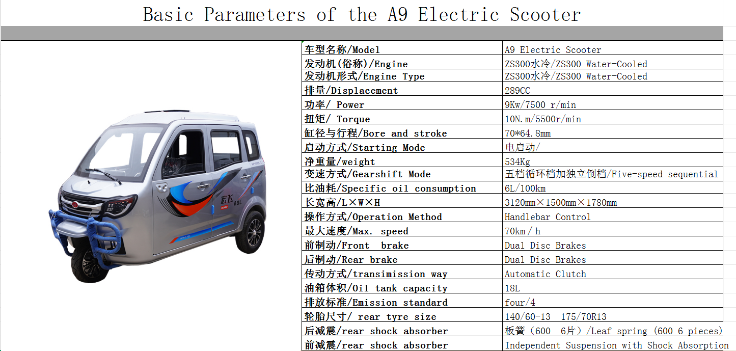 | A9 Electric Scooter | 300cc Engine with Automatic Clutch |