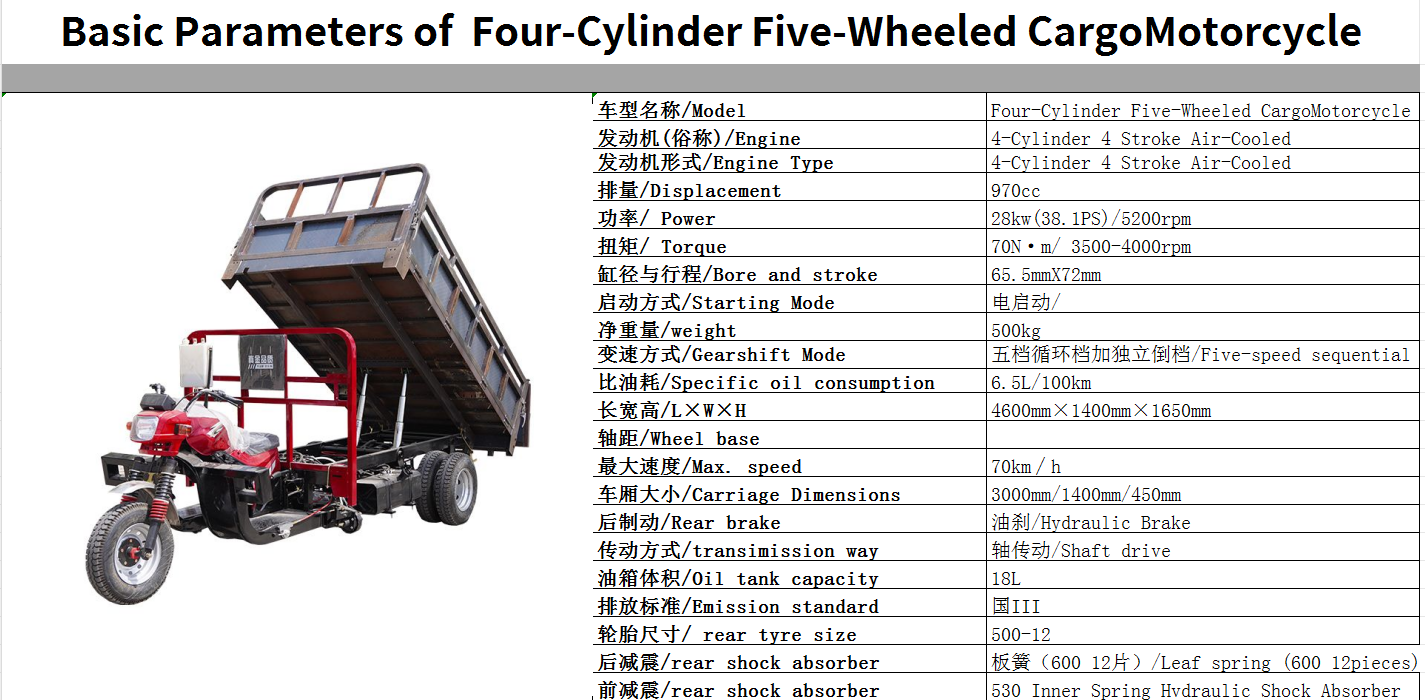 | gasoline tricycle | Four-Cylinder Five-Wheeled CargoMotorcycle 1 |