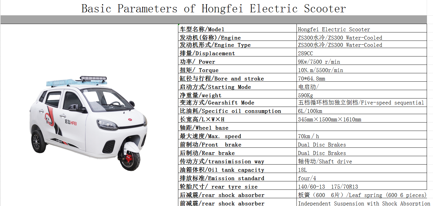 | Hongfei Electric Scooter | 300cc Engine with Automatic Clutch |