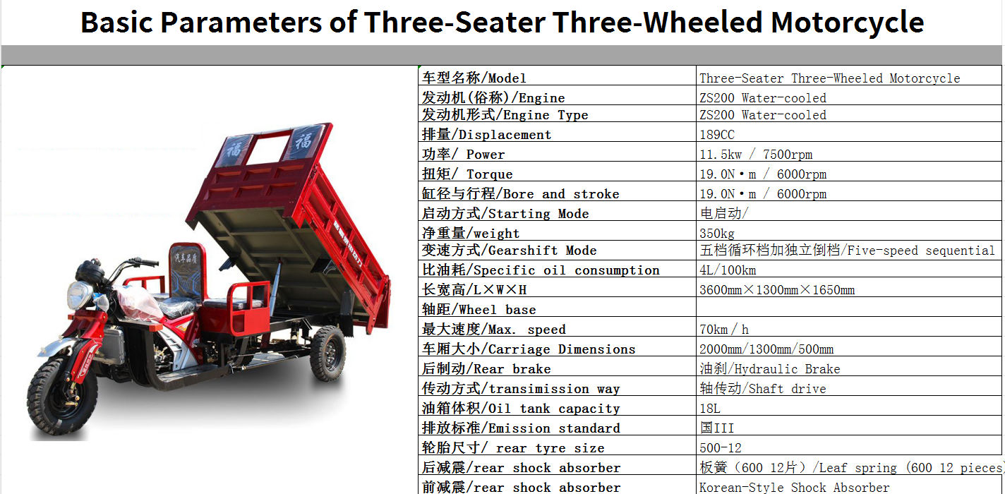 | gasoline tricycle | Three-Seater Three-Wheeled Motorcycle |